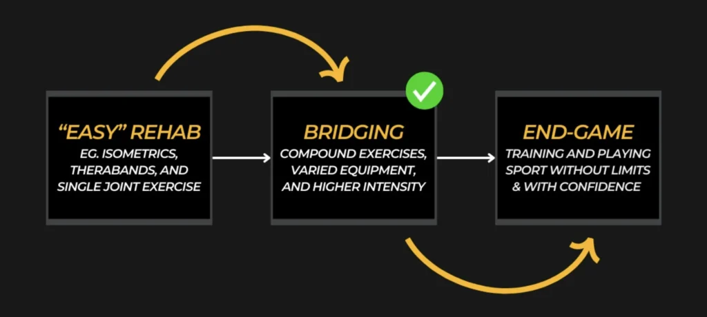 The missing link is what I call Bridging — the step that rebuilds strength and resilience so your shoulders can actually handle pressing, pulling, and loading again.