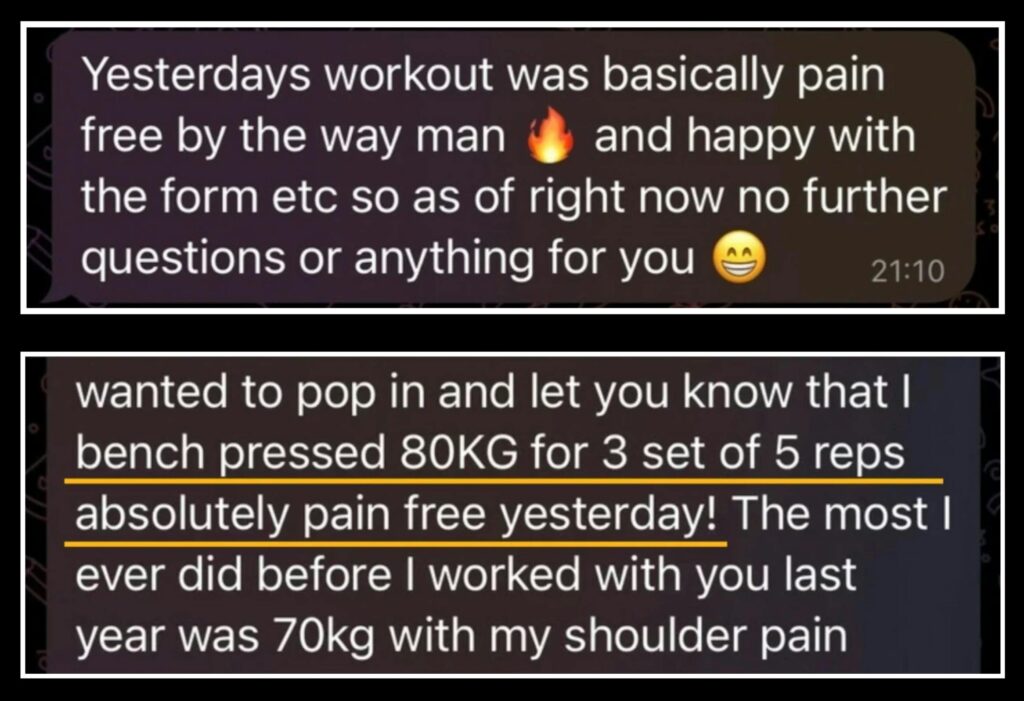 Bridging helped my client (Matt) go from 48 months shoulder pain to 100% pain-free workouts in 4 weeks, and he is now bench pressing more weight than ever, with ZERO issues.