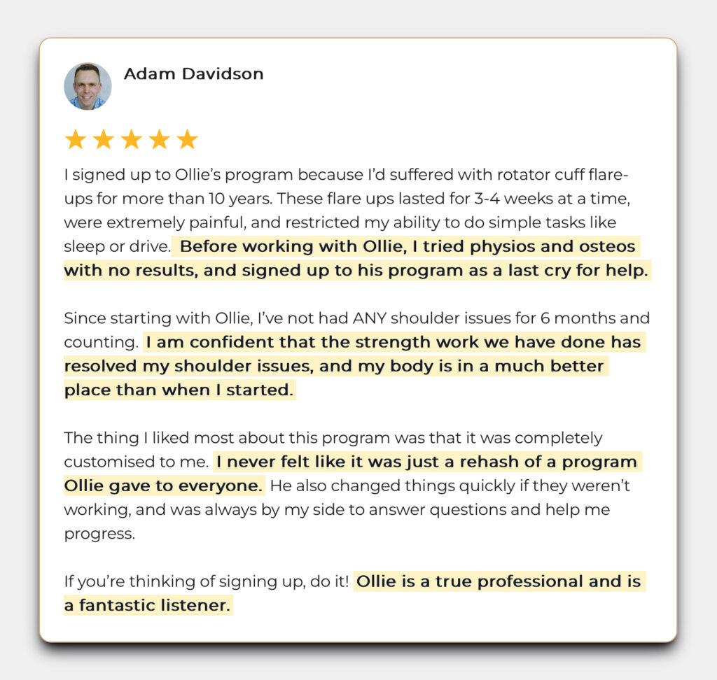 Adam, a business owner and father from Australia, suffered from rotator cuff pain for 10 years.