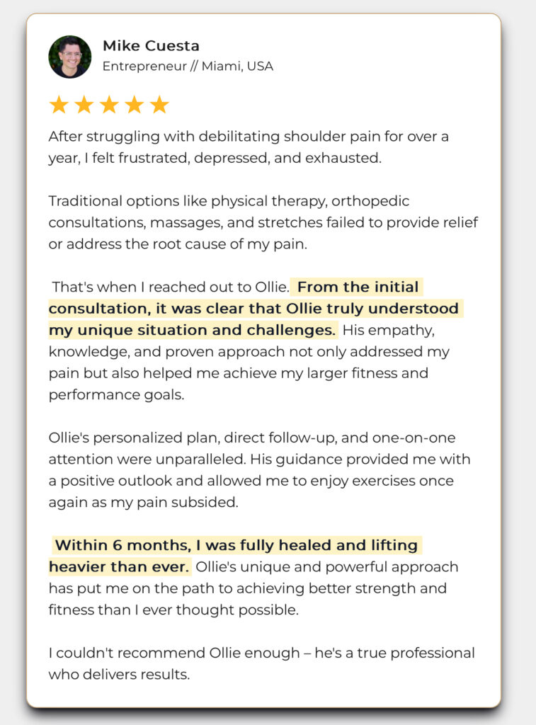 A Miami-based business owner and dedicated father who struggled with debilitating chronic shoulder pain for 13 months…