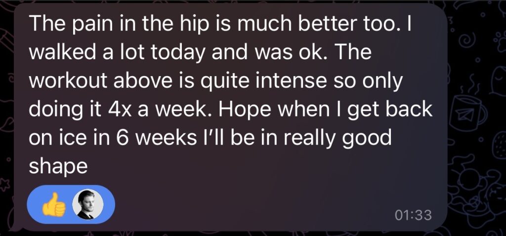 3 weeks in, he was pain free. 5 weeks in, his hip felt BETTER than it ever had and 75% in to the program, he signed up for a further 6 months.