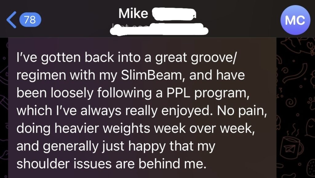Mike (a Miami-based father and fitness lover) battled with 13 months of shoulder pain… he lost strength and muscle, couldn’t train his upper body, and felt weak and frustrated.